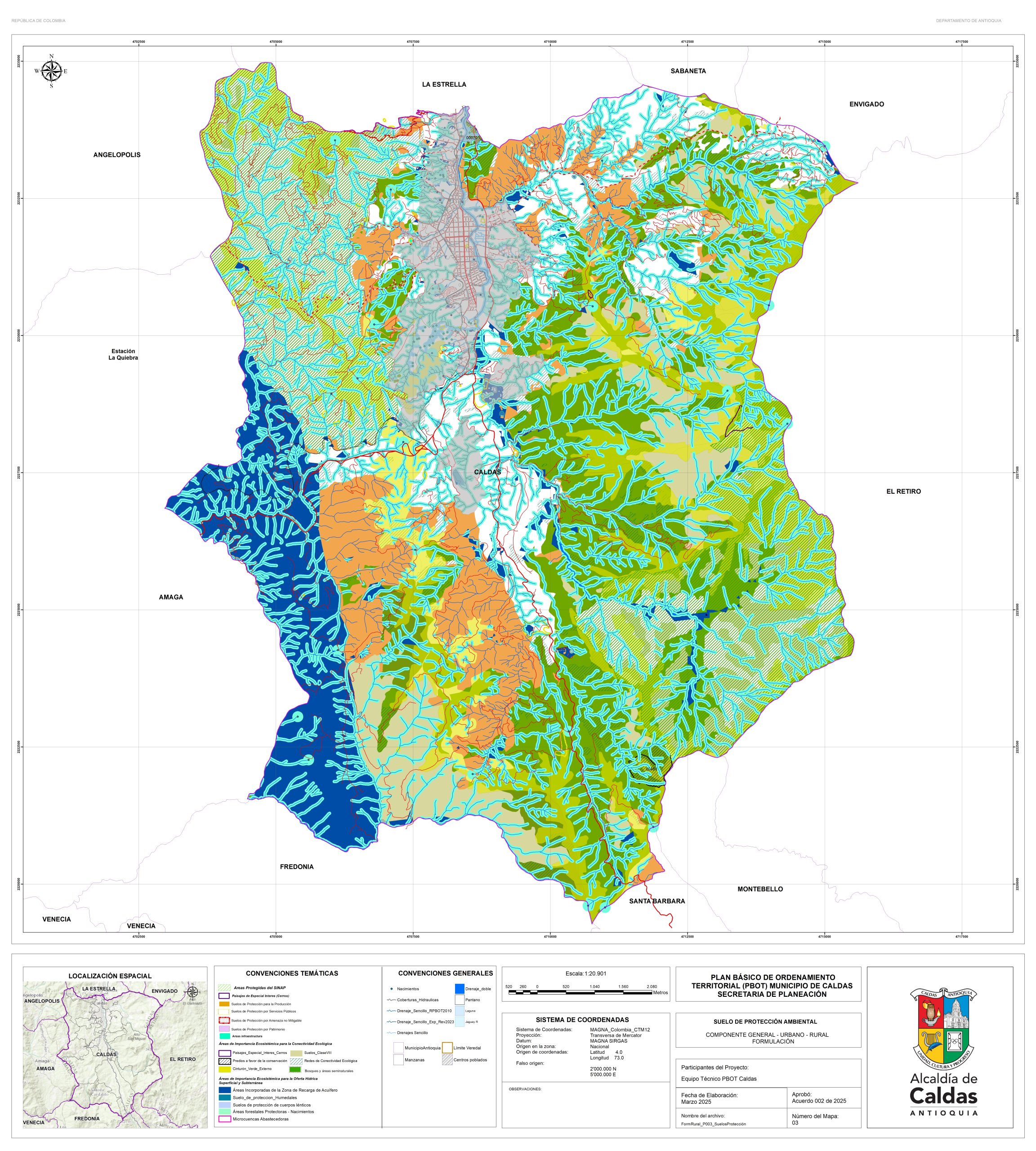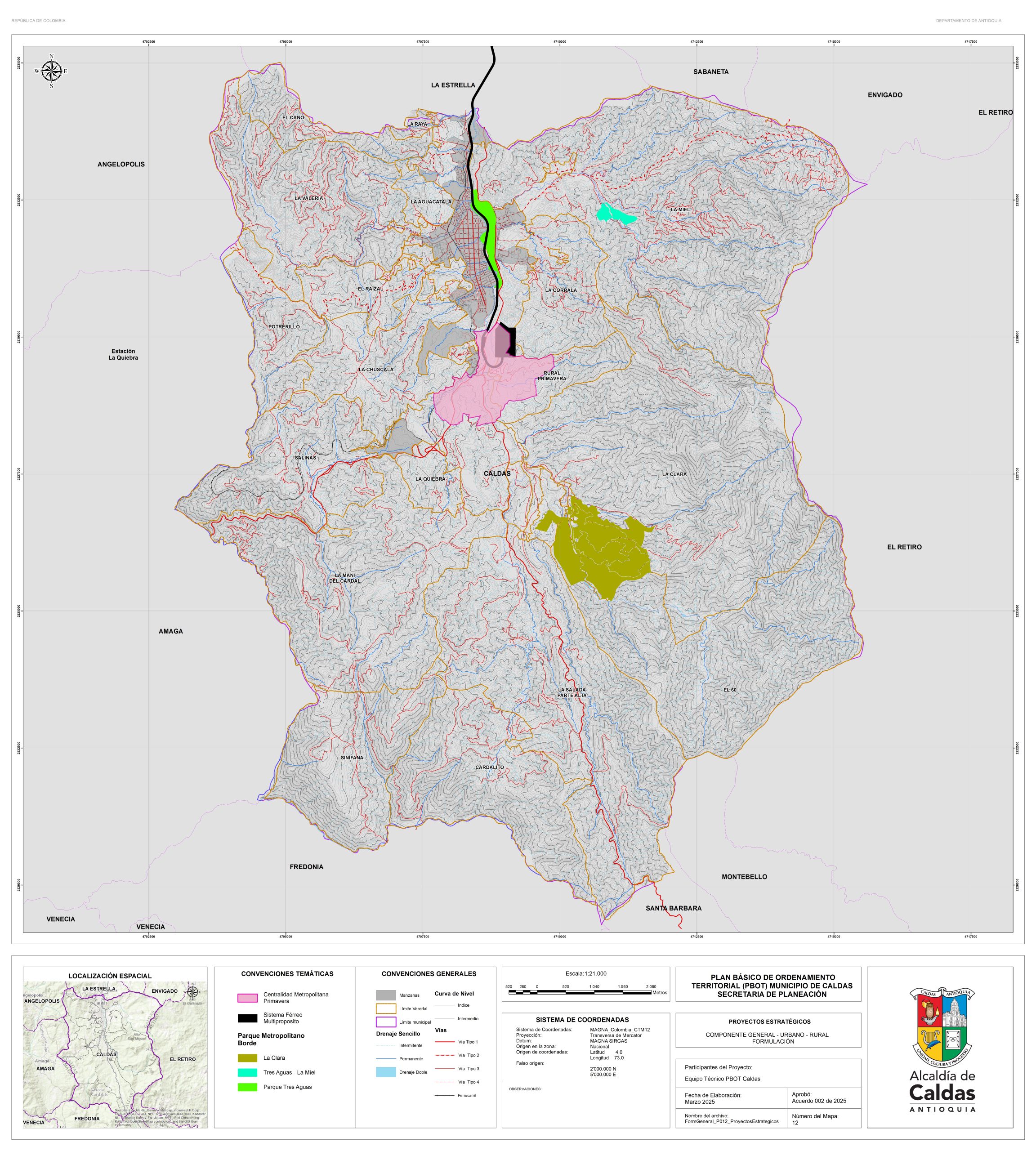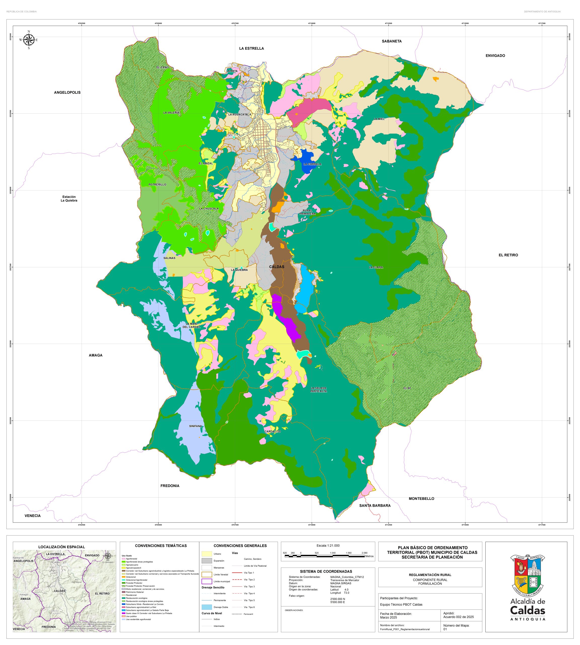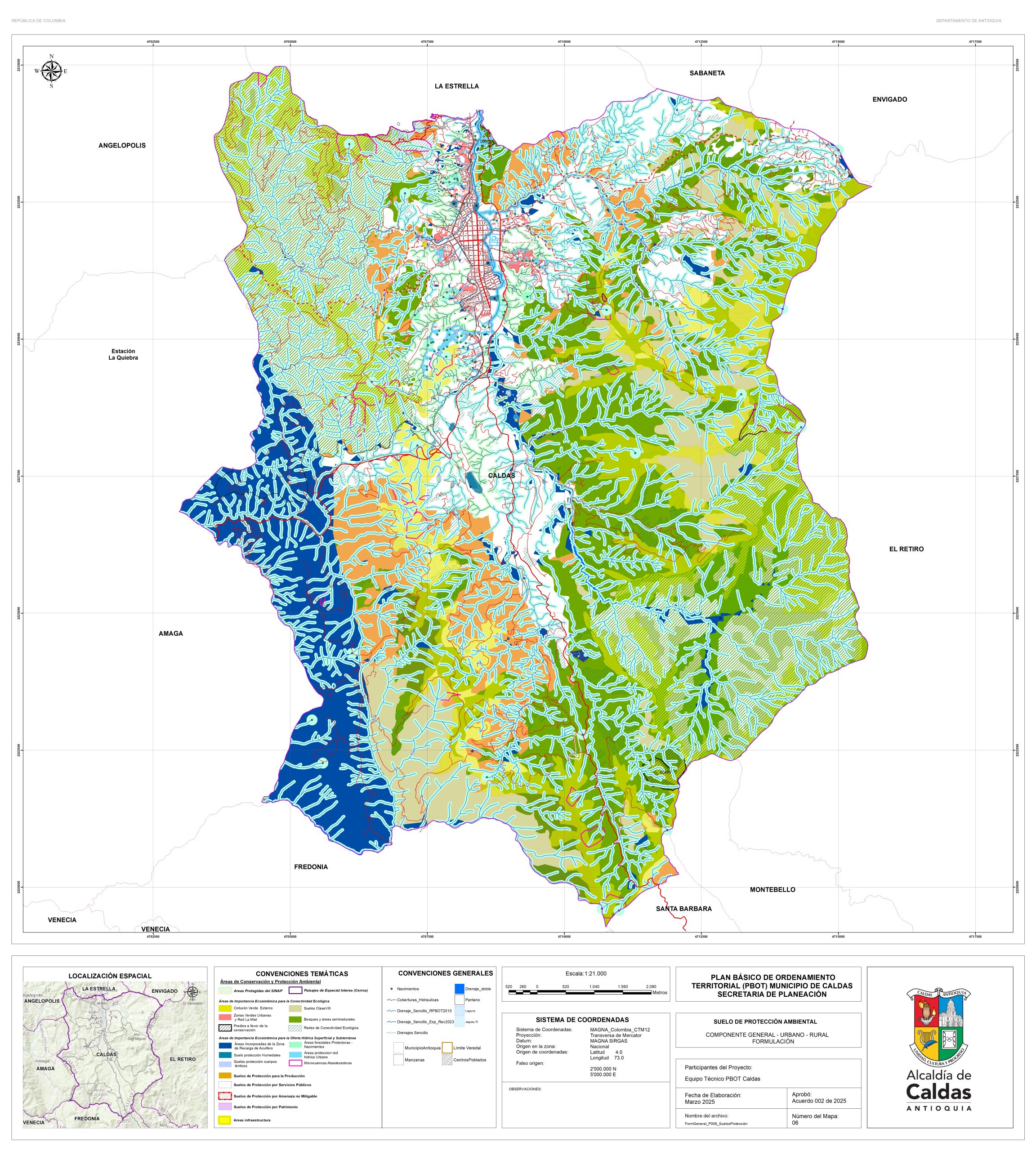 Con el fin de garantizar la consulta y la participación ciudadana, la administración Municipal se permite publicar los documentos de la propuesta de revisión y ajuste del PBOT del Municipio de Caldas, que actualmente se encuentra en fase de concertación con las corporaciones ambientales. Para lo cual ponemos a disposición el correo electrónico de la secretaría de planeación, en la que se podrán realizar las recomendaciones y observaciones. planeación@caldasantioquia.gov.co