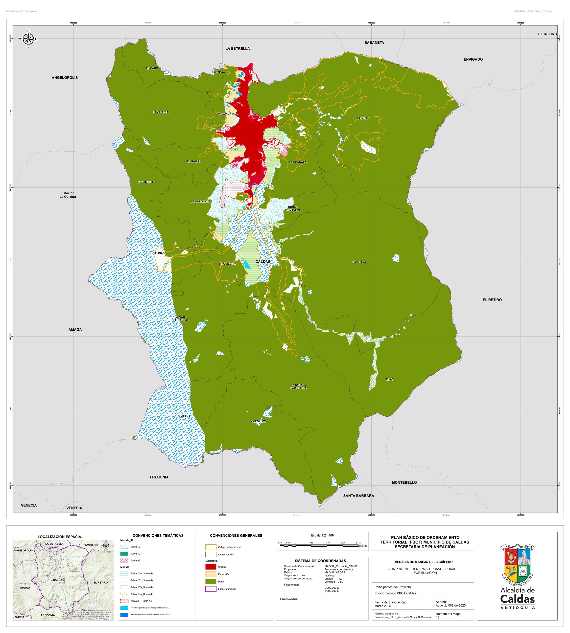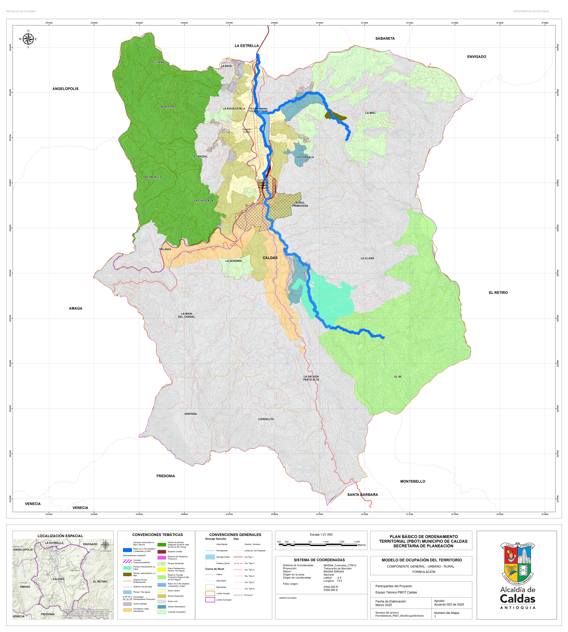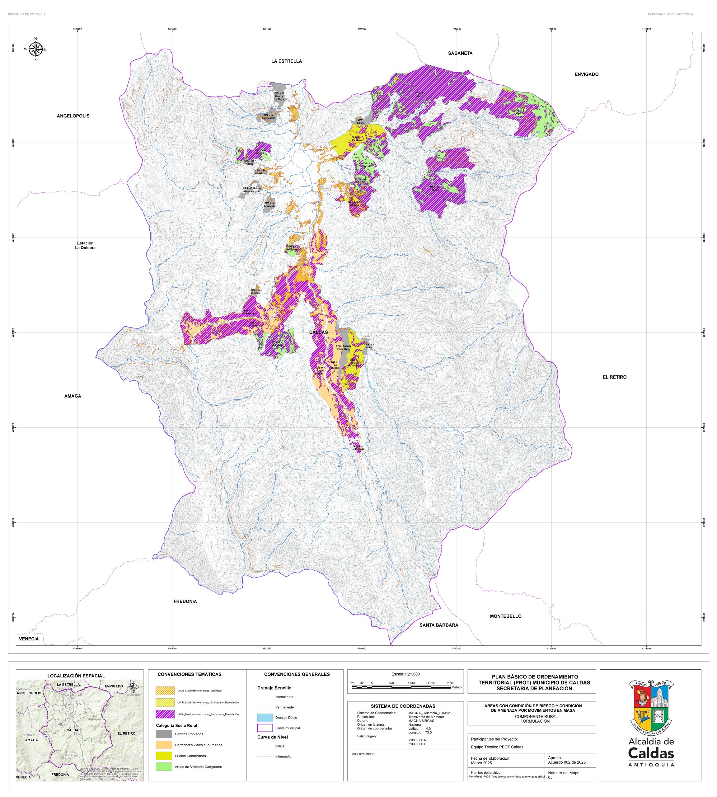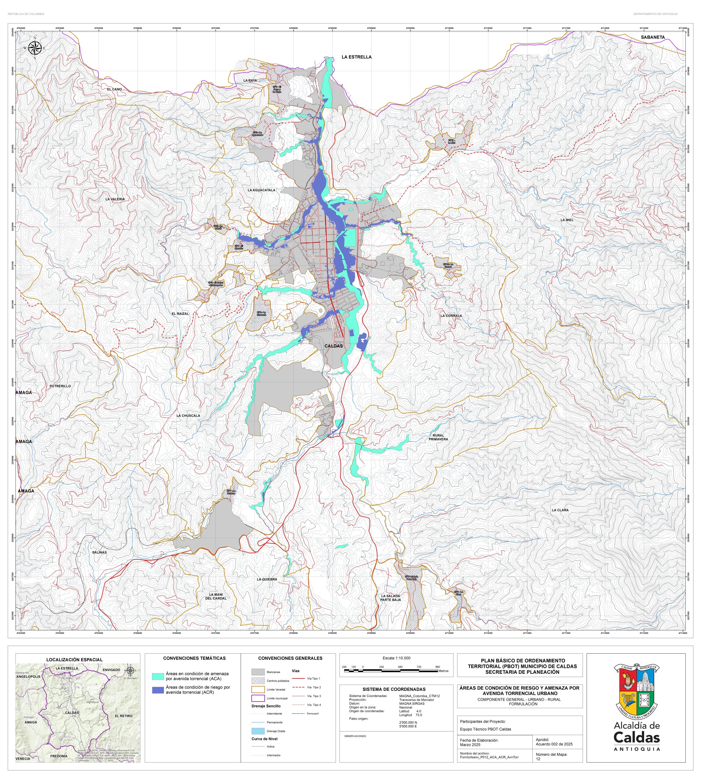 Con el fin de garantizar la consulta y la participación ciudadana, la administración Municipal se permite publicar los documentos de la propuesta de revisión y ajuste del PBOT del Municipio de Caldas, que actualmente se encuentra en fase de concertación con las corporaciones ambientales. Para lo cual ponemos a disposición el correo electrónico de la secretaría de planeación, en la que se podrán realizar las recomendaciones y observaciones. planeación@caldasantioquia.gov.co