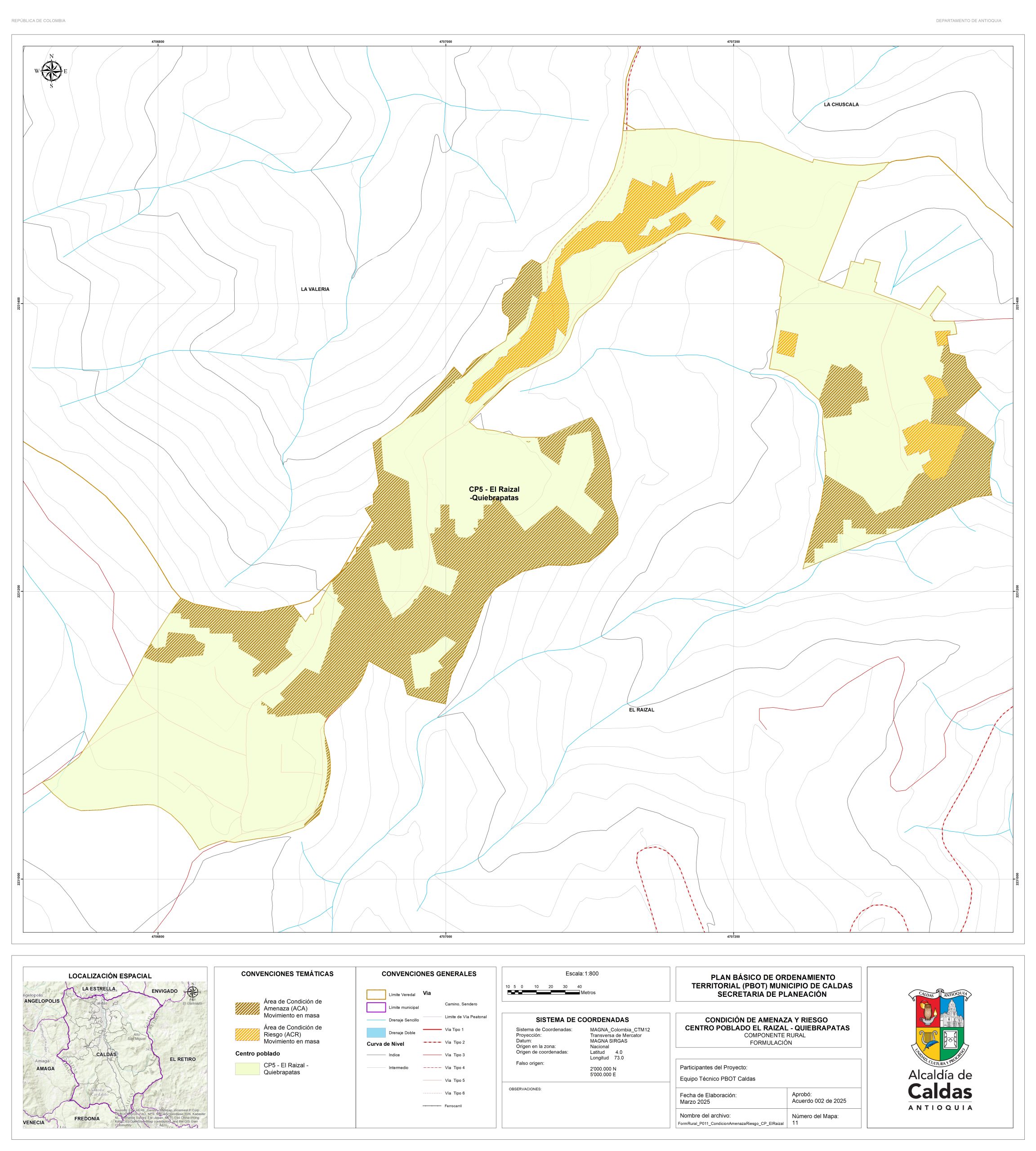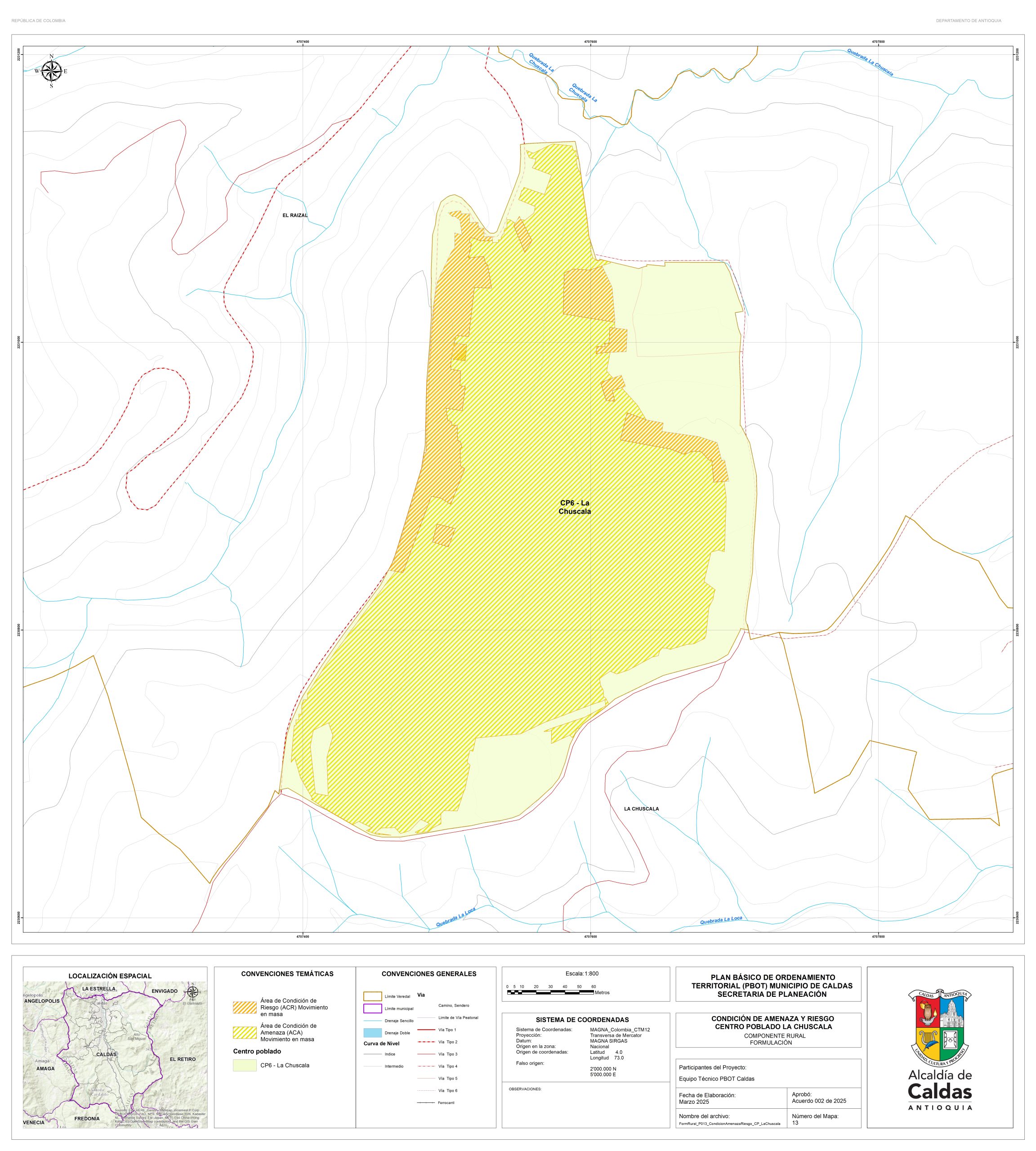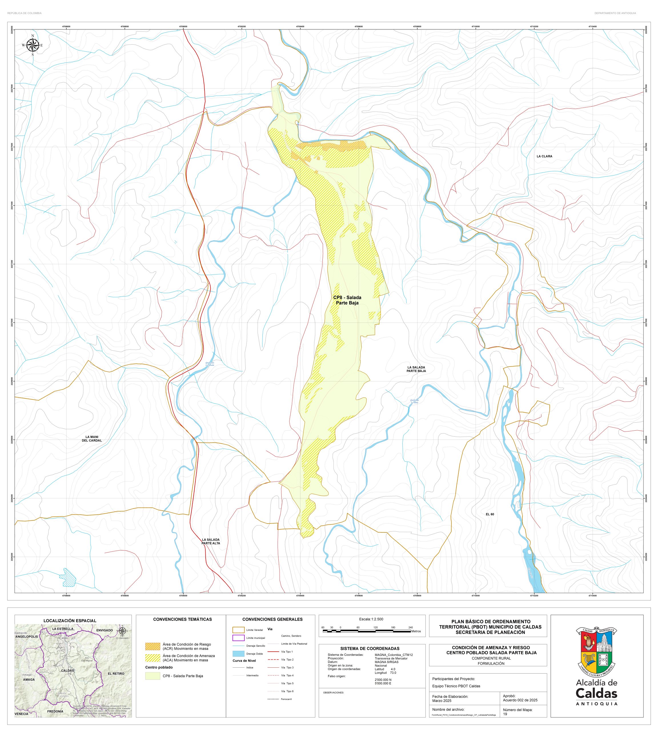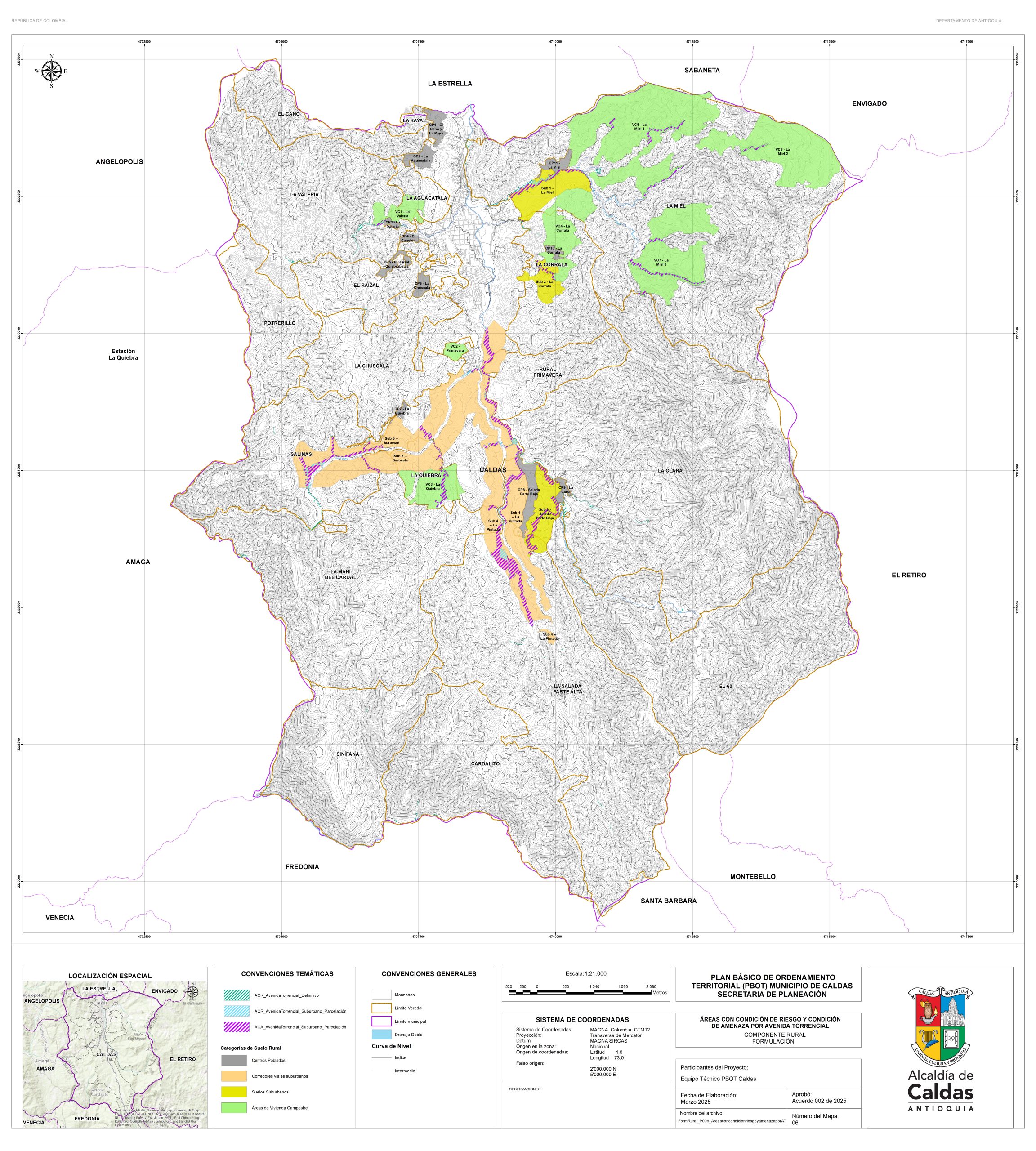 Con el fin de garantizar la consulta y la participación ciudadana, la administración Municipal se permite publicar los documentos de la propuesta de revisión y ajuste del PBOT del Municipio de Caldas, que actualmente se encuentra en fase de concertación con las corporaciones ambientales. Para lo cual ponemos a disposición el correo electrónico de la secretaría de planeación, en la que se podrán realizar las recomendaciones y observaciones. planeación@caldasantioquia.gov.co